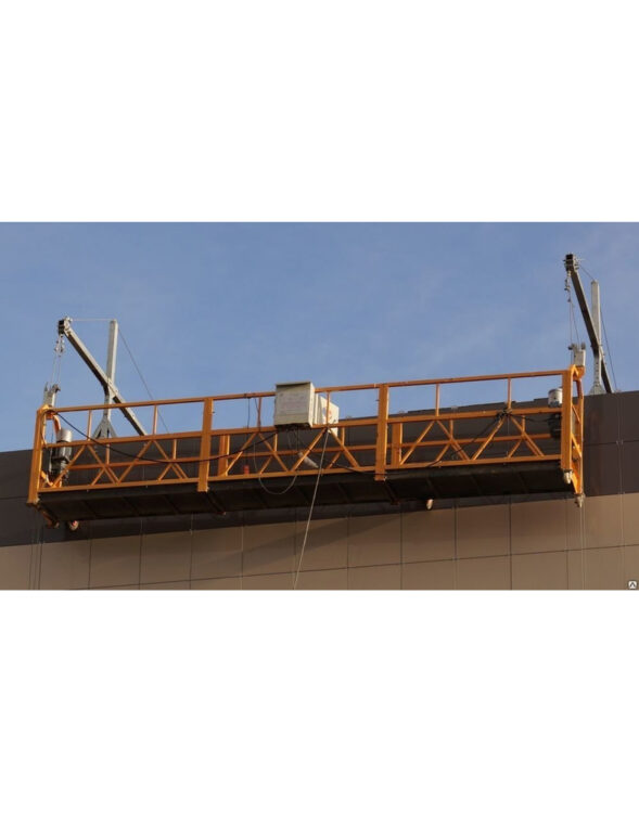 Люлька ZLP — это подвесная платформа, предназначенная для подъема рабочих и строительных материалов на высоту. Устройство крепится к крыше здания с помощью консолей и тросов, а перемещение платформы осуществляется за счет электрических лебедок.